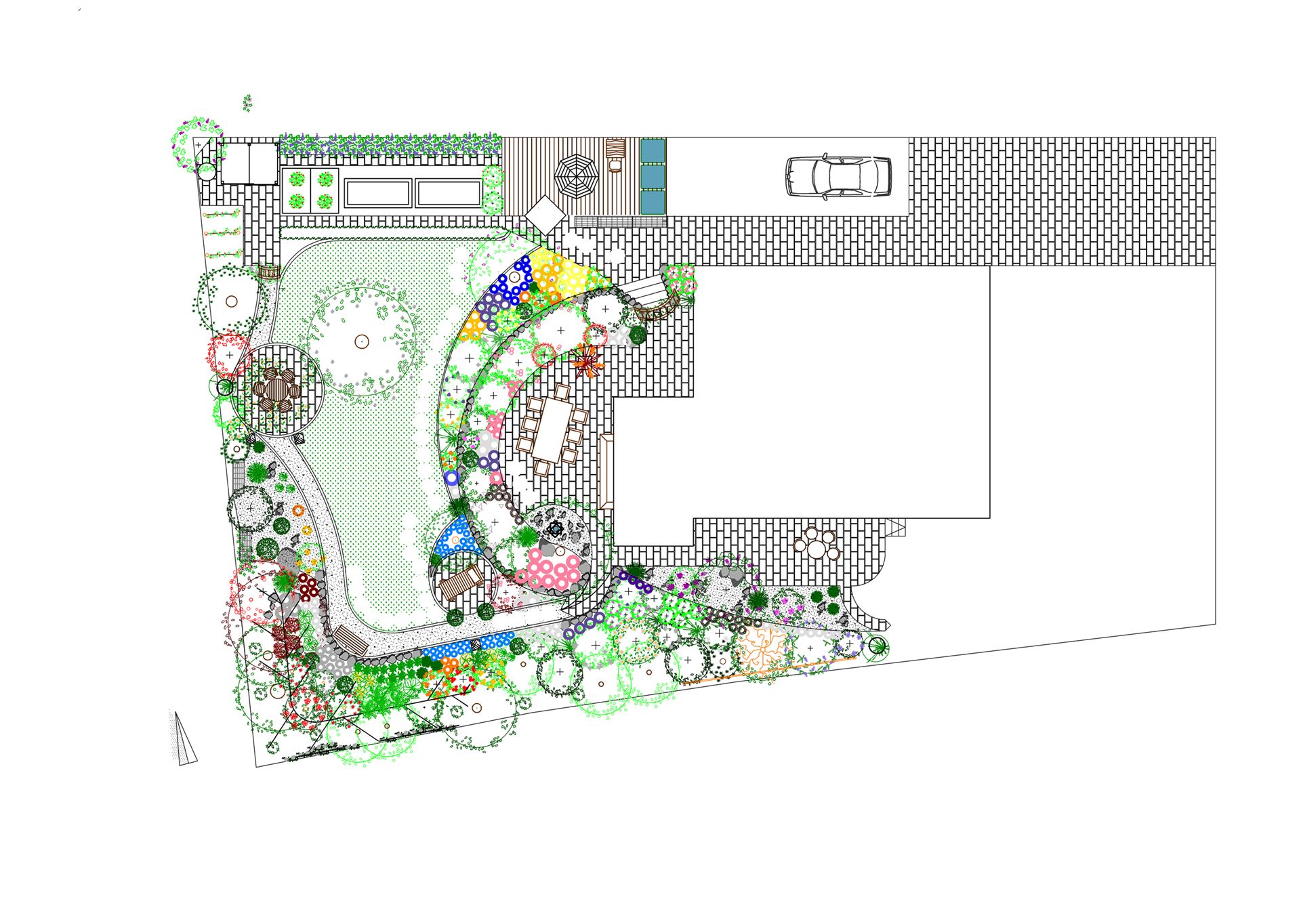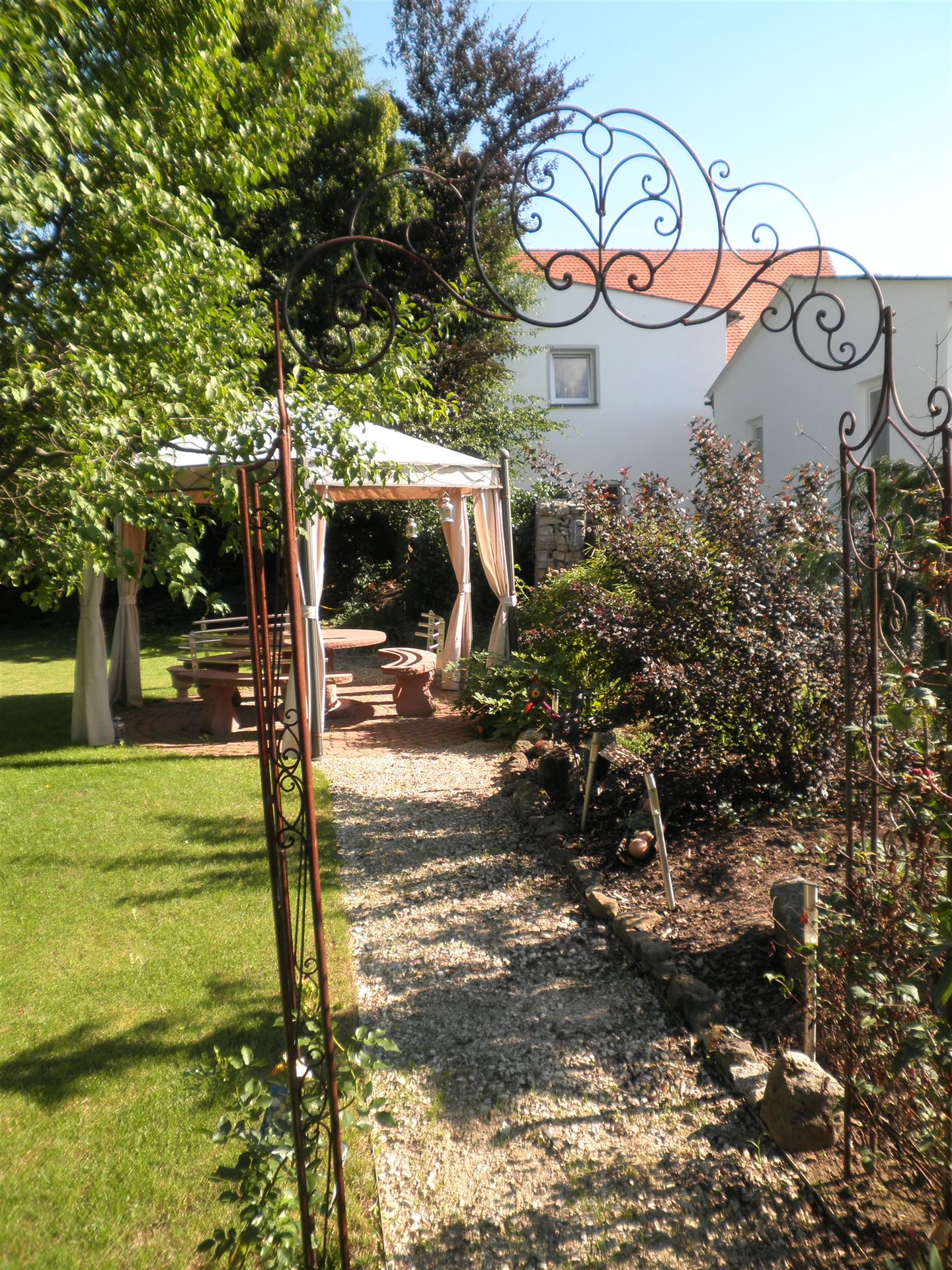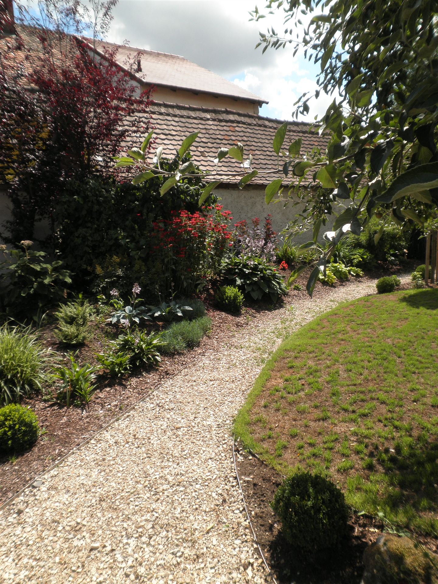 Materialien, die in den Trockenmauern und in den Gabionen verwendeten Feldsteine, geben diesem Garten einen natürlichen Charakter. Die Waldecke mit diversen Schattenstauden und Farnen schließt an üppige Staudenbeete an. Gerade bei Nacht - in angestrahltem Zustand- sind die Gabionenkörbe mit den vorgepflanzten Gräsern ein echter Hingucker.