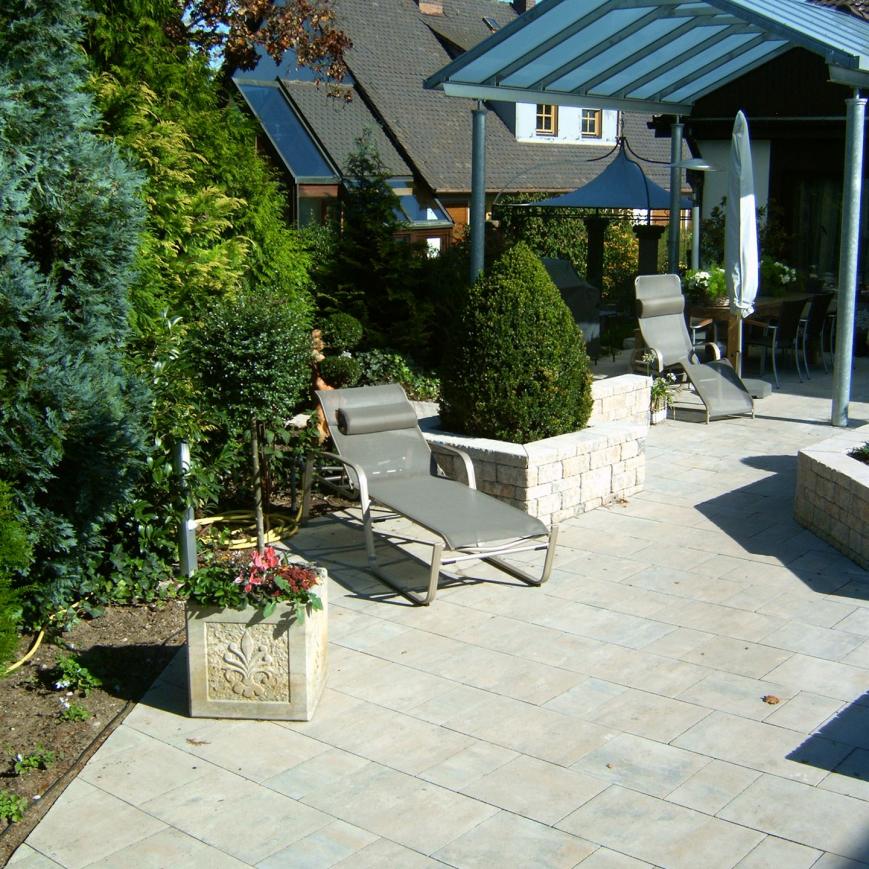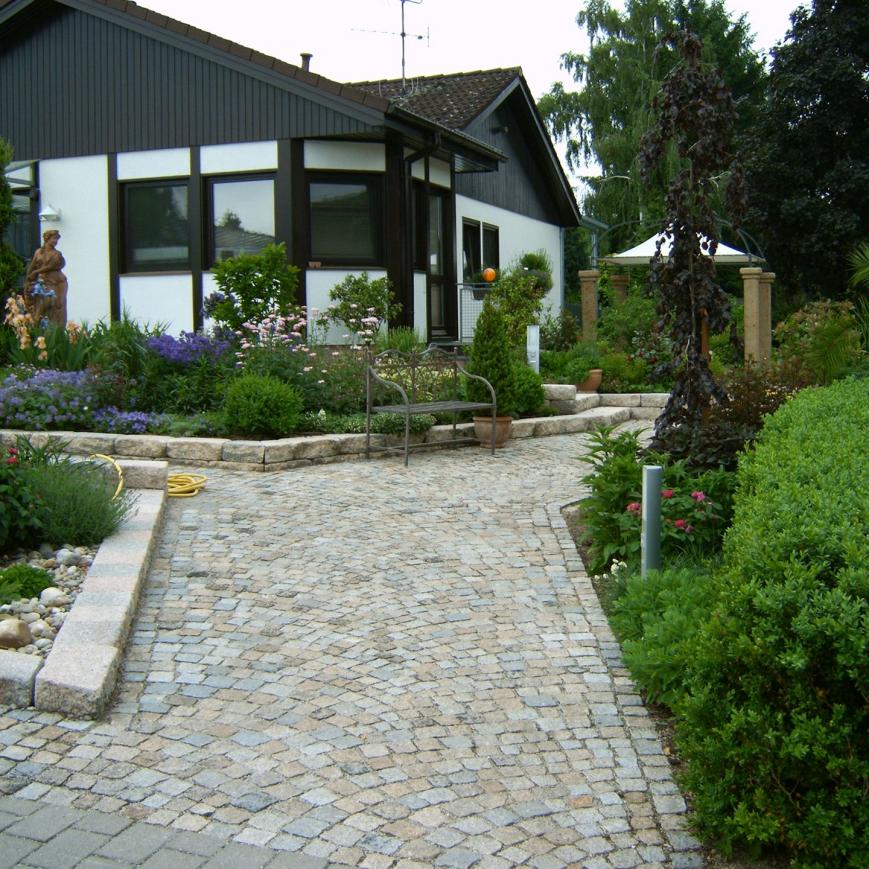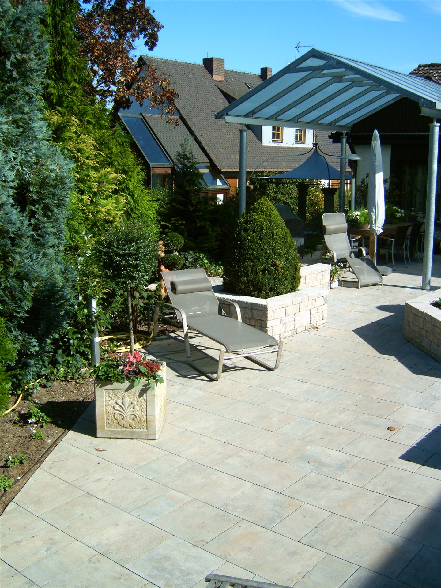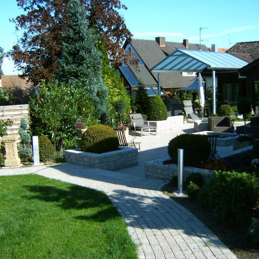 Parkähnliche Rundwege, eine imposante Teichanlage, ein großzügiger Loungebereich und ein Fontainenbrunnen als optisches Highlight, machen diesen Garten zu einem echten Schmuckstück